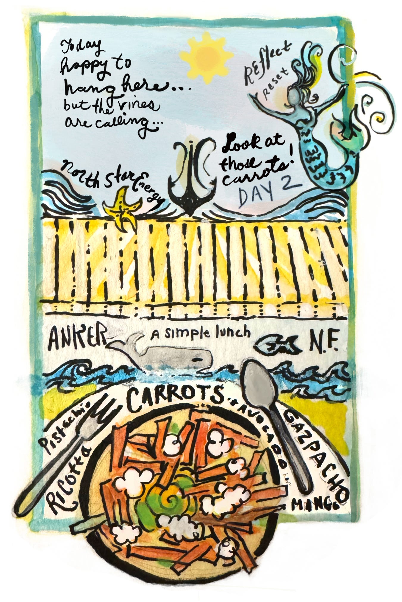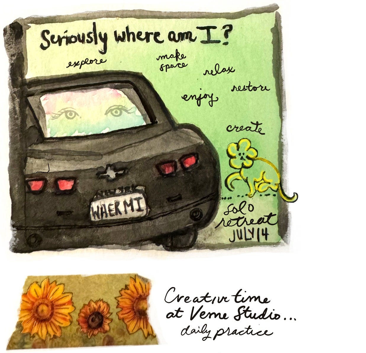 On my first walk around the marina, a parked car with the plates, "Where M I" inspired tasting notes and scribbles at my favorite art studio in town, Veme.